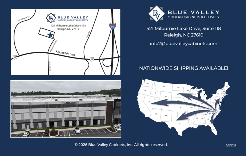 Serving customers nationwide, we maintain a vast inventory of cabinets, closets, and accessories that are in-stock and ready for shipment, local delivery, or on-site pick up.